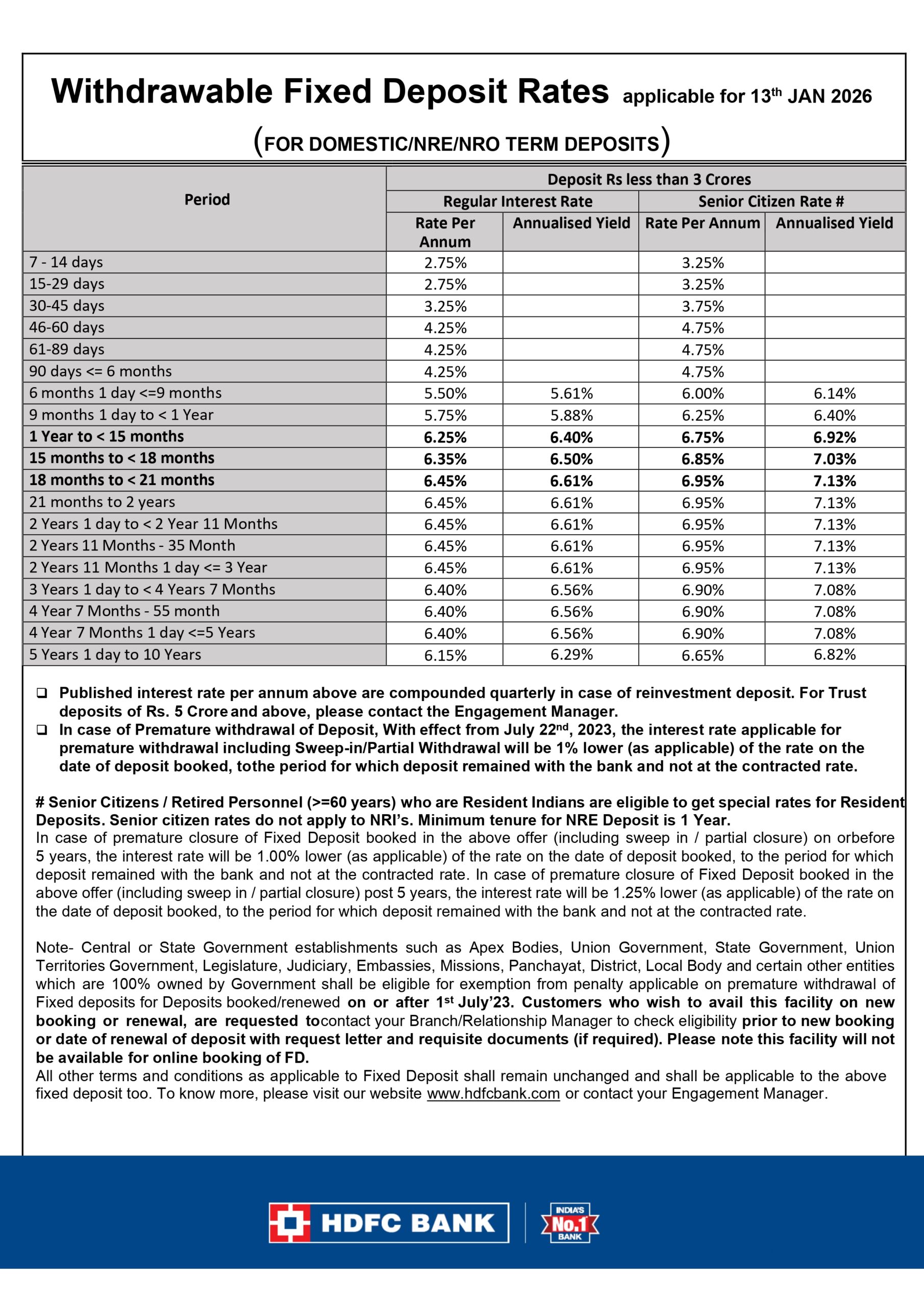 Premature encashment of deposit is available any time subject to payment of prescribed penalty.